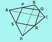 Let ABCD be a qiadrilateral. P,Q,R,S are the mid-points of side AB,BC,CD,AD respectively. Join P,Q,R,S which forms a quadrilateral PQRS. Draw the diagonals BD & AC.