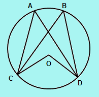 Let CD be an arc of a circle subtending angles CAD and CBD on the circumference of the circle with centre O.